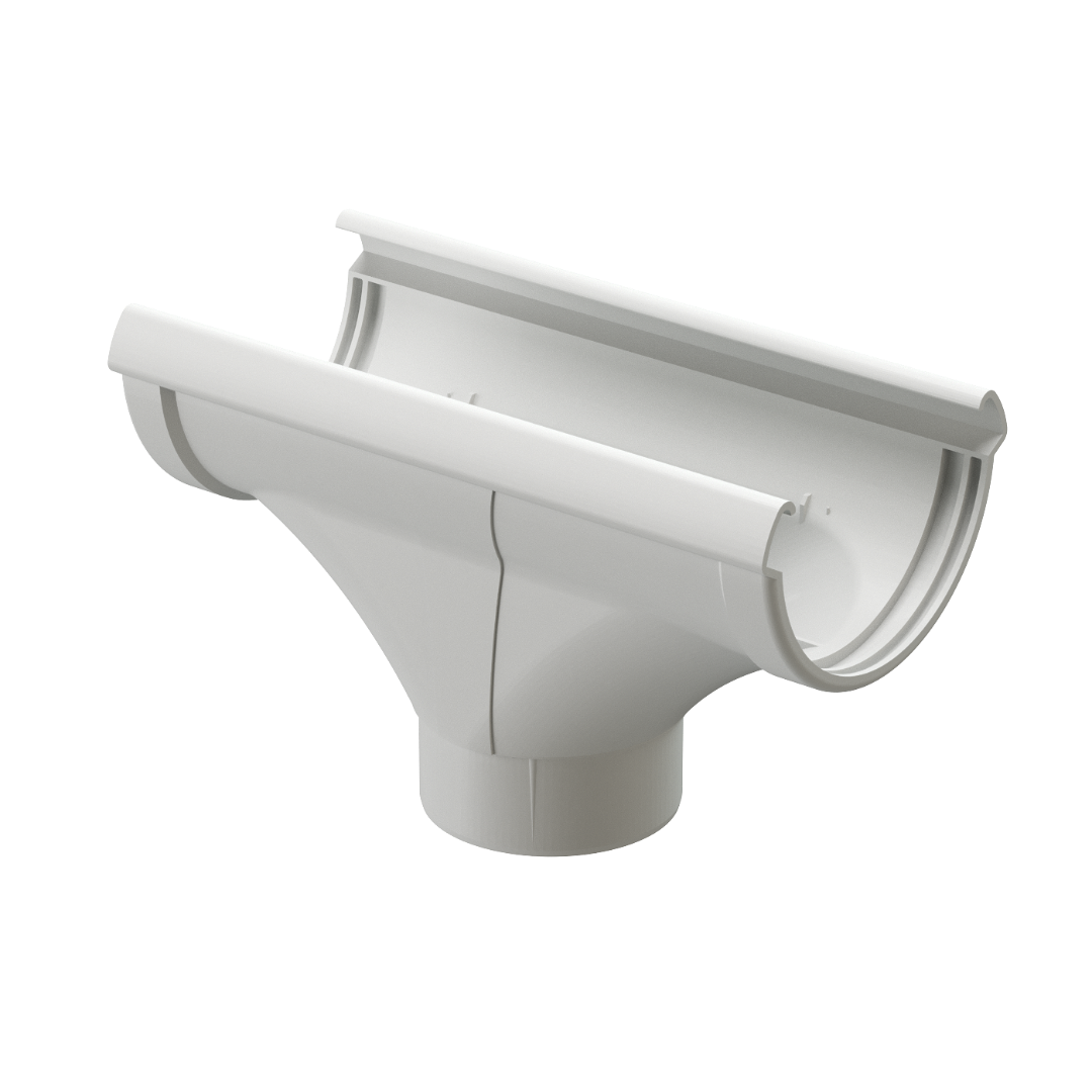 Форма и размер воронки устроены таким образом, что желоб просто вставляется в нее без дополнительных креплений и герметика, благодаря особой системе соединения элементов.