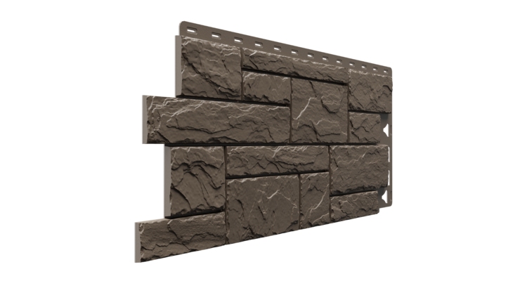 Фасадные панели серии «Standard» под сланец имеют 5 вариантов цвета в коллекции, среди которых цвет «Куршевель» наиболее темный среди оттенков коричневого. Данные панели популярны при отделке как цоколя дома, так и фасада целиком.