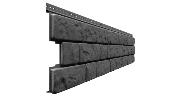 Панели под камень выполнены методом экструзии с последующей термоформовкой. Серия включает две коллекции: BERGART, имитирующая натуральный камень во фламандской кладке, и новая коллекция ROCKY с текстурой слоистого песчаника.