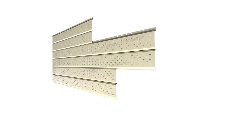 Софит МЕТАЛЛ ПРОФИЛЬ перфор. Lбрус-XL-14х335 NormanMP (ПЭ-01-7004-0.5) – это панели сайдинга Lбрус, на поверхности которых нанесена перфорация. Применяется для подшивки карнизных свесов. Софит подчёркивает законченный и аккуратный вид здания. Перфорация в панелях поддерживает свободную циркуляцию воздуха под кровлей и предотвращают появление плесени, конденсата, грибка.Покрытие NormanMP®: