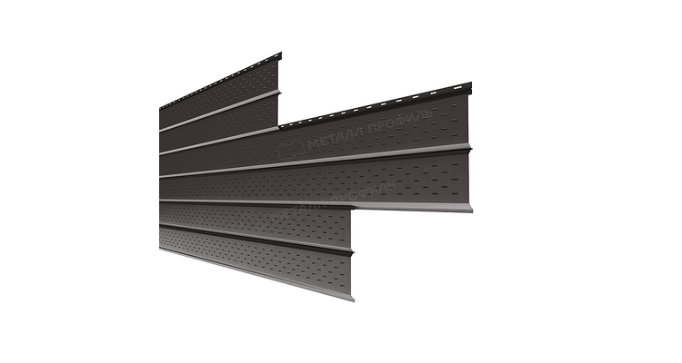 Софит – это панели сайдинга Lбрус, на поверхности которых нанесена перфорация. Используется для оформления кровельных свесов. Софит добавляет законченный и аккуратный вид зданию. Отверстия в панелях поддерживают доступ воздуха в подкровельное пространство и предотвращают появление плесени, конденсата, грибка.Покрытие Полиэстер: