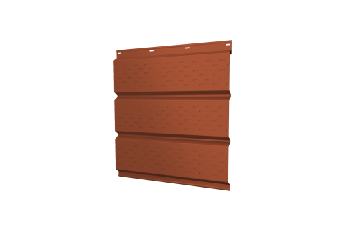 Описание товара: "Софит металлический полная перфорация 0,5 PurLite Мatt с пленкой RAL 8004 терракота"