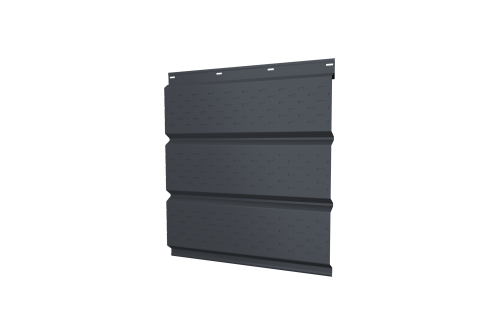 Описание товара: "Софит металлический полная перфорация 0,5 PurPro Matt 275 с пленкой RAL 7024 мокрый асфальт"