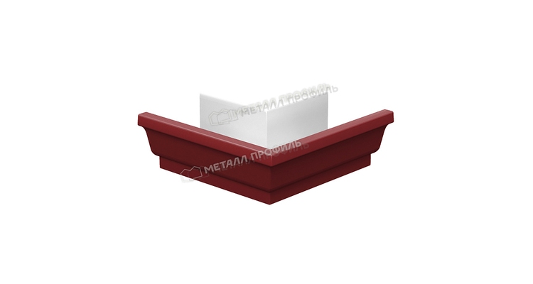 Металлическая система водоотвода Угол желоба наружный МЕТАЛЛ ПРОФИЛЬ БЮДЖЕТ 120х86 Ral 3011 изготовлена из стали машинной оцинковки. В качестве защитного барьера от ультрафиолета, осадков, механических повреждений применено покрытие Полиэстер. Компания «Металл Профиль» изготавливает водосток Угол желоба наружный МЕТАЛЛ ПРОФИЛЬ БЮДЖЕТ 120х86 Ral 3011 в оптимальной толщине 0.5 мм (включая защитно-декоративное покрытие и слой цинка). Такая система подходит как для частного дома, так и для промышленных зданий. Она долговечна, экономична и эффективно отводит воду с кровли.Покрытие Полиэстер: